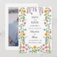 Cartão de salvar a data de casamento com ilustração floral em aquarela | Cartão personalizável com ilustração de flores coloridas, perfeito para casamentos de primavera e verão. Adicione a foto do casal no verso.