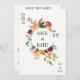 Flores botânicas de aquarela em uma bela paleta de burgundy, ouro, pêssego, coral e moderno branco salvam a data do casamento. Personalizar texto, estilo de fonte, cor e tamanho.