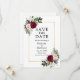 Moderno Elegante Watercolor Burgundy Noivado Floral Anúncio de Casamento Salvar O Cartão de Data inclui peões, lírios, folhas de eucalipto e outros belos lençóis verdes em um quadro de ouro.