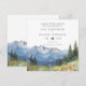 Este cartão moderno e elegante de casamento com montanhas em aquarela e flores silvestres para salvar a data pode ser personalizado com suas informações em tipografia moderna e foto especial no verso. Projetado por Thisisnotme©