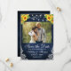 Cartão de Save the Date de Casamento com Flores de Girassol Aquarela e Renda de Folhagem com Luzes de Corda de Madeira Azul Rústica