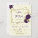 elegante romântico flores roxas roxas e folhas de ouro em moldes geométricos dourados exceto o convite de data Os detalhes da brilha são simulados