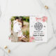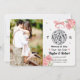 Um belo e glamouroso casamento de bola de disco salve o cartão com fotos da data e o convite com uma bola de disco prateada pendurada por uma fita cor-de-rosa pálida com sotaques de cor prateada e pequenos corações cor-de-rosa num papel branco ondulado. Bonito rosa floral rosa e bordas de peônia completam essa dança feminina e feminina e a discoteca salvam a data. Perfeito para um casamento temático na discoteca, aniversário ou dança de noivado ou festa de renovação de votos ou cerimônia. Projetado por Chrissy H. Studios, LLC. Todos os direitos reservados.