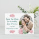 Aqui está uma design tradicional com todos os elementos incluindo uma fotografia oval e uma forma floral. A parte de trás desta design tem um padrão floral cor-de-rosa que se coordena com as cores na frente.