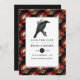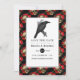 Casamento gótico de Crimson vermelho salve o cartão de data com um raven e um padrão de rosa de crânio.