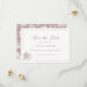 This elegant Save the Date card features a soft dusty rose tone that sets a warm, romantic mood. A touch of white keeps the design clean and airy, enhancing its modern minimalism. The back is adorned with a delicate floral print, while the front showcases a single, hand‑painted blossom that echoes the artwork behind it, creating a cohesive and artistic look. The calligraphy script title adds a refined, graceful touch. Together, these elements form a beautifully balanced announcement that introduces your wedding day with subtle elegance and charm. The reminder has easy editable template - you can change the text, font, and color palette while keeping the professionally designed layout.