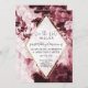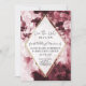 "Floral Marsala Red Dourado Geométrico w Script Salvar a Data." Vintage elegante Chinoiserie encontra estilo geométrico moderno com design de flor botânica vermelha marsala burgundy e branca, folha de ouro mole parece uma delicada estrutura em forma de diamante com letra escrita caligráfica "Salvar a Data". Concebido por uma artista com licença internacional, Audrey Jeanne Roberts, copyright.