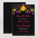 É hora de anunciar seu grande dia! Este cartão de Fiesta Save the Date é uma maneira colorida e divertida de informar às pessoas que devem marcar seus calendários. Com flores bonitas e coloridas e brilhos dourados, ele realmente se destaca. Veja itens coordenados em nossa loja, Enchanted Finch.