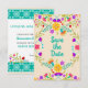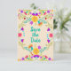 Floral Save the Date card in color Mexicano Fiesta style and decorated nos dois lados com flores folk art e papel picado. Na parte da frente, lê-se simplesmente "Salvar a Data" em verde-turquesa sobre fundo de champanhe. No verso, o modelo está pronto para adicionar sua data especial, seu nome, a ocasião e o texto personalizado. O design pode ser personalizado para se adequar a qualquer ocasião e é perfeito para coordenar com a nossa coleção Quinceanera. Procure na nossa loja etiquetas de endereço, envelopes, etc.