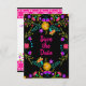 Floral Save the Date card in color Mexicano Fiesta style and decorated nos dois lados com flores folk art e papel picado. Na parte da frente, lê-se simplesmente "Salvar a Data" em cor-de-rosa brilhante sobre fundo preto. No verso, o modelo está pronto para adicionar sua data especial, seu nome, a ocasião e o texto personalizado. O design pode ser personalizado para se adequar a qualquer ocasião e é perfeito para coordenar com a nossa coleção Quinceanera. Procure na nossa loja etiquetas de endereço, envelopes, etc.