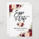 Manuscrito De Pincel Moderno, Watercolor Burgundy Marsala Floral, Salvar O Cartão De Noivado De Data