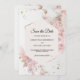 Anuncie seu dia especial com elegância usando este pastel cor-de-rosa floral Salve o cartão de Data. Apresentando delicados rosas de pincel, flores secas e sotaques geométricos de ouro, este design moderno adiciona um toque romântico suave à sua papelaria de casamento. Totalmente personalizável com seus nomes, data do casamento e local, este cartão é perfeito para casais que buscam um anúncio na moda e eterno. Ideal para primavera, jardim, boho ou casamentos com temas românticos.