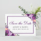 Floral De Cor De Água Pura Ultra Violeta Salve A Placa De Anúncio Do Noivado De Data - Quadro Roxo - Script Roxo - Parte Traseira Roxo