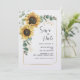 Crie um Sunflower Floral moderno salve o cartão de data com este modelo bonitinho com um belo buquê floral rústico, quadro de efeito de ouro geométrico, com uma tipografia simples moderna. DICA: Cartões de suíte de casamento iguais, como RSVP, programas de casamento, banners, tapeçarias, etiquetas de presentes, placas e outras pegadas de casamento e guloseimas estão disponíveis na coleção abaixo com esta design.