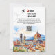 Um modelo de fotografia simples, simples, moderno, mas elegante tem duas imagens de aquarela, uma de Florença e outra de Ponte Vecchio, em Itália. O verso tem uma pintura de cor d'água maior de Florença abaixo do texto e um modelo de código QR. Adicione a sua foto especial de casais de noiva à frente e personalize as modelos para atender às suas necessidades. Tanto a frente como a parte de trás têm a silhueta de um pequeno avião com uma linha pontilhada atrás dele mostrando sua trajetória de voo e a parte de trás um símbolo de localização para o nome da cidade ou cidade em que você irá celebrar seus núpcias de casamento.