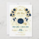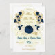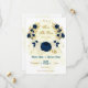 Flores azuis e brancas-marinhos românticas com folhas de ouro botânicas exceto a data de convite Os detalhes da brilha são simulados.