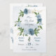 Maçãs azuis românticas, flores brancas e folhas verdes, coroa dourada botânica, exceto a data convite.