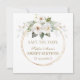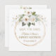 Design de cartão elegante com flores brancas de cor aquosa lindas folhas verdes, uma falso brilho dourado quebrado, tipografia elegante. Use a ferramenta Personalizar para adicionar suas informações. Veja, também, minha coleção de Quinceañera e 16 festas.