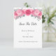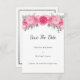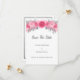 Um elegante brilho branco e reluzente prateado com um casamento floral cor-de-água pincelada rosa Salve a data é o design perfeito para complementar um evento elegante e sofisticado. Apresenta uma cor de água rosa e prateada floral com uma tipografia prateada simples e elegante sobre fundo branco. Este design tradicional, único e clássico impressionará todos os seus convidados.