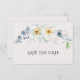 Um belo casamento Salve o cartão de data em um fundo branco com uma flor de água azul e branca Esta salva a data é parte de um conjunto de produtos que corresponde ao design. Esta design é perfeita para um casamento mais elegante numa igreja.