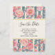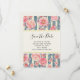 Casamento salve o cartão de data com um belo padrão com flores bonito cor-de-rosa sobre um padrão listrado composto por listras azuis e creme. Um quadro retangular com uma borda falsa de folha de ouro colocada sobre cima com o seu dentro de texto personalizado.