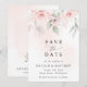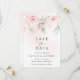 Convide amigos e família de estilo e defina o tom para seu dia especial com este charmoso cartão de data. Design apresenta flores cor-de-água rosa pinceladas e verde sobre fundo rosa pálido.