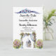 Um cartão de salvar a data de casamento de gnomos adorável e único. Personalize três linhas de texto e também uma seção no verso do cartão para mais informações, se necessário.