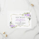 Desenho de cartão elegante com flores de lavanda em aquarela e folhas verdes, uma moldura dourada falsa, divisor floral, em fundo branco. No verso, coroa floral de lavanda em forma de coração e iniciais. Use a ferramenta Personalizar para adicionar suas informações, alterar as fontes e as cores das fontes. Para itens correspondentes, visite minha Coleção de Flores de Lavanda.