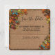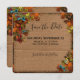 Salve o cartão de data com um cartão falso. Os cantos são decorados com designs temáticos do outono com bolotas e folhas de outono, dando-lhe uma sensação rústica de país.