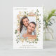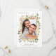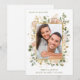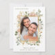 Este maravilhoso e floral casamento salve o cartão de data apresenta sua foto pessoal favorita em um quadro elegante e dourado. Isto é rodeado por lindas flores rústicas de aquarela em tons cor-de-rosa neutros e esbranquiçados, e folhas de ouro e verde, sobre um simples fundo branco.