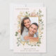 Este maravilhoso e floral casamento salve o cartão de data apresenta sua foto pessoal favorita em um quadro elegante e dourado. Isto é rodeado por lindas flores rústicas de aquarela em tons neutros e esbranquiçados, e folhas douradas e verdes, sobre um fundo cor-de-rosa escamoteado.
