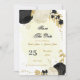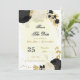 Flores românticas, pretas e brancas, com folhas de ouro, botânicas, exceto a data de convite Os detalhes da brilha são simulados.