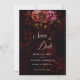 Cartão elegante e sofisticado de salvar a data do casamento em vermelho burgundy escuro e preto. Torne o seu cartão de RSVP de casamento tão elegante quanto a celebração com este design floral preto e vermelho escuro chic. Com rosas burgundy ricas, flores vermelhas profundas e folhagens escuras, este cartão exala elegância e romance com um toque sombrio e sofisticado. A tipografia refinada, que combina letra moderna com fontes serif clássicas, cria um visual atemporal e sofisticado. Perfeito para casamentos góticos, vintage ou luxuosos à noite, este cartão de RSVP complementa lindamente o conjunto de casamento, ao mesmo tempo que facilita aos convidados a confirmação da presença com estilo.