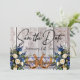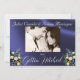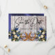 Este design tem uma elegância rústica, mantendo um tema simples. Fundo de madeira de celeiro com fita azul empoeirada, renda, ferraduras amarradas e buquês de flores silvestres com espaços reservados para a data na frente. Espaço reservado para uma foto do casal está no verso do cartão com nomes e o texto "Gettin' Hitched" em um fundo de fita correspondente. Projetado para combinar com a coleção "Gettin' Hitched - Horseshoes, Ribbon & Lace". Para alterar os detalhes, clique em «Personalizar». Para mover o texto ou alterar o tamanho, a fonte ou a cor do texto, clique em «Clique para personalizar ainda mais»