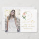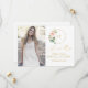 Design moderno, geométrico e elegante com flores cor-de-rosa em aquarela, moldura redonda única em brilho dourado falso; na parte de trás moldura floral. Use a ferramenta Personalizar para adicionar suas informações. Para itens correspondentes, visite minha Coleção de Fotos de Chá de Panela de Noiva.