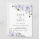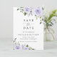 Convide amigos e família de estilo e defina o tom para seu dia especial com este charmoso cartão de data. Design apresenta flores de aquarela roxas e verde sobre fundo branco.