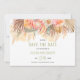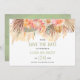 Folhas de palma secas tropicais, gramíneas pampas e flores proteicas sage botânico verde Save the Date flat card. Esta adorável design de casamento, uma terra de folhas de palma secas, flores de protea e grama de pampas.