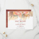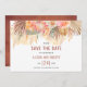 Folhas de palma secas tropicais, erva-palmeira-palmeira e flores de protea terracotta botânica Save the Date flat card. Esta adorável design de casamento, uma terra de folhas de palma secas, flores de protea e grama de pampas.