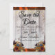 Esta design tem uma elegância rústica, mantendo-a um tema simples. Buquês de flores silvestres com lindas cores do outono e luzes cintilantes com fita de cobre sobre fundo de madeira de galha com espaços reservados para informação. O espaço para uma foto do casal está na parte de trás do cartão. Projetado para coordenar com a coleção Rustic Wildflower & Ribbon. Para alterar os detalhes, clique em "Personalizar". Para mover o texto ou alterar o tamanho, a fonte ou a cor do texto, clique em "Clique para personalizar mais"