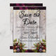 Esta design tem uma elegância rústica, mantendo-a um tema simples. Buquês de flor selvagem em lindas cores quentes do verão e luzes cintilantes com fita púrpura sobre fundo de madeira com espaços reservados para informação. O espaço para uma foto do casal está na parte de trás do cartão. Projetado para coordenar com a coleção Rustic Wildflower & Ribbon. Para alterar os detalhes, clique em "Personalizar". Para mover o texto ou alterar o tamanho, a fonte ou a cor do texto, clique em "Clique para personalizar mais"
