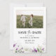 Lavanda Salve A Data Com Placa Plana De Foto. Este na moda e elegante Save The Date with Photo Flat Card apresenta uma linda Lavanda de cor d'água púrpura verde pintada manualmente. Localize itens correspondentes na Coleção de Lavandas em Verde Roxo.