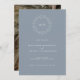 Simples Pecado Clássico Blue Leafy Wildflower Crest Salve a Data - Uma coroa botânica de flor silvestre simples e elegante é apresentada neste simples, mas tão elegante Salve a Data. A parte de trás do convite contém a foto favorita do casal em cheio sangrado. Salve a data é mostrada em azul empoeirado, mas você pode facilmente alterar o plano de fundo na ferramenta design para coordenar com sua paleta de cores.
