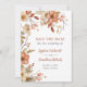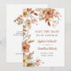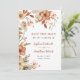 Código QR de Flores Silvestres Rústicas para Convite de Noivado de Casamento de Outono... Um charmoso buquê de flores silvestres rústicas em tons de terracota, verde-sage e creme emoldura o texto do seu convite de noivado de casamento de final de verão ou outono. O design exibe os detalhes do seu convite em escrita caligráfica moderna, bem como tipografia itálica romântica. O verso do cartão inclui o código QR do site do seu casamento para que os convidados possam acompanhar sua jornada e também visualizar informações importantes sobre sua futura boda. O gráfico do código QR e todo o texto podem ser facilmente revisados no mesmo modelo de personalização.