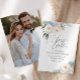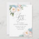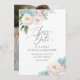 Casamento botânico elegante salve a data com buquês de flores de marfim azul e cor-de-rosa e folhas suaves sobre o fundo branco clássico e seus nomes e todos os detalhes especiais de casamento escritos em uma cinza clássica. O cartão inverso tem espaço para sua melhor foto vertical Quer você esteja planejando uma celebração de verão ou um romântico caso de primavera, este salve a data define o tom perfeito para seu dia especial.