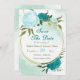 Bonito, salve o cartão de data com turquesa e flores azuis-claras e folhas verdes Os detalhes da brilho do ouro são simulados. PARA MAIS PRODUTOS CORRESPONDENTES, clique na coleção acima ou entre em contato comigo
