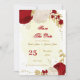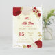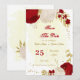 Flores românticas vermelhas escuras e brancas com folhas de ouro botânicas exceto a data de convite Os detalhes da brilha são simulados.