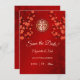 A cereja vermelha floresce e um símbolo de felicidade dupla dourada num fundo floral vermelho brilhante. Salve o texto da data em uma fonte elegante. Produtos de casamento chineses correspondentes disponíveis.