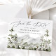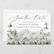 Rustic salva as datas com "Salvar a Data" em um roteiro elegante de caligrafia com uma paisagem de cor d'água em árvores e montanhas verdes. Personalize a frente da montanha da floresta guarde as datas com seus nomes, data de casamento e local do casamento. O tema da natureza salvará os inversos de data para exibir seu site de casamento e quaisquer detalhes importantes do casamento.