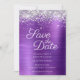 Crie seu casamento moderno, salve as datas. Bordas mais brilhantes e brilhantes, brilhantes, unidas com uma folha metálica violeta-púrpura de ametista clara a escura. Toda a textura brilhante, faísca, metálica e brilhante é criada por uma imagem gráfica digital impressa. O estilo e a cor da fonte podem ser personalizados.
