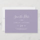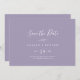 Esta lavanda de folha mínima horizontal, exceto o cartão de data, é perfeita para um casamento de boho. A design apresenta uma simples silhueta verde de folha em púrpura lilás pastel com estilo minimalista de jardim boêmico.